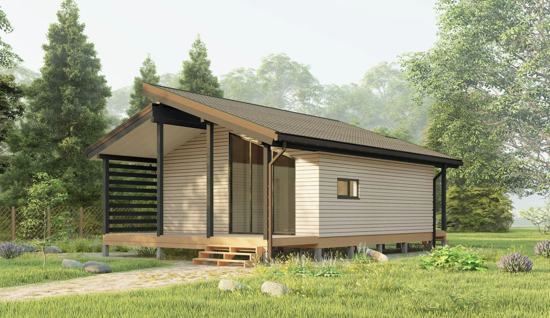 Одноэтажный каркасный дом Малина