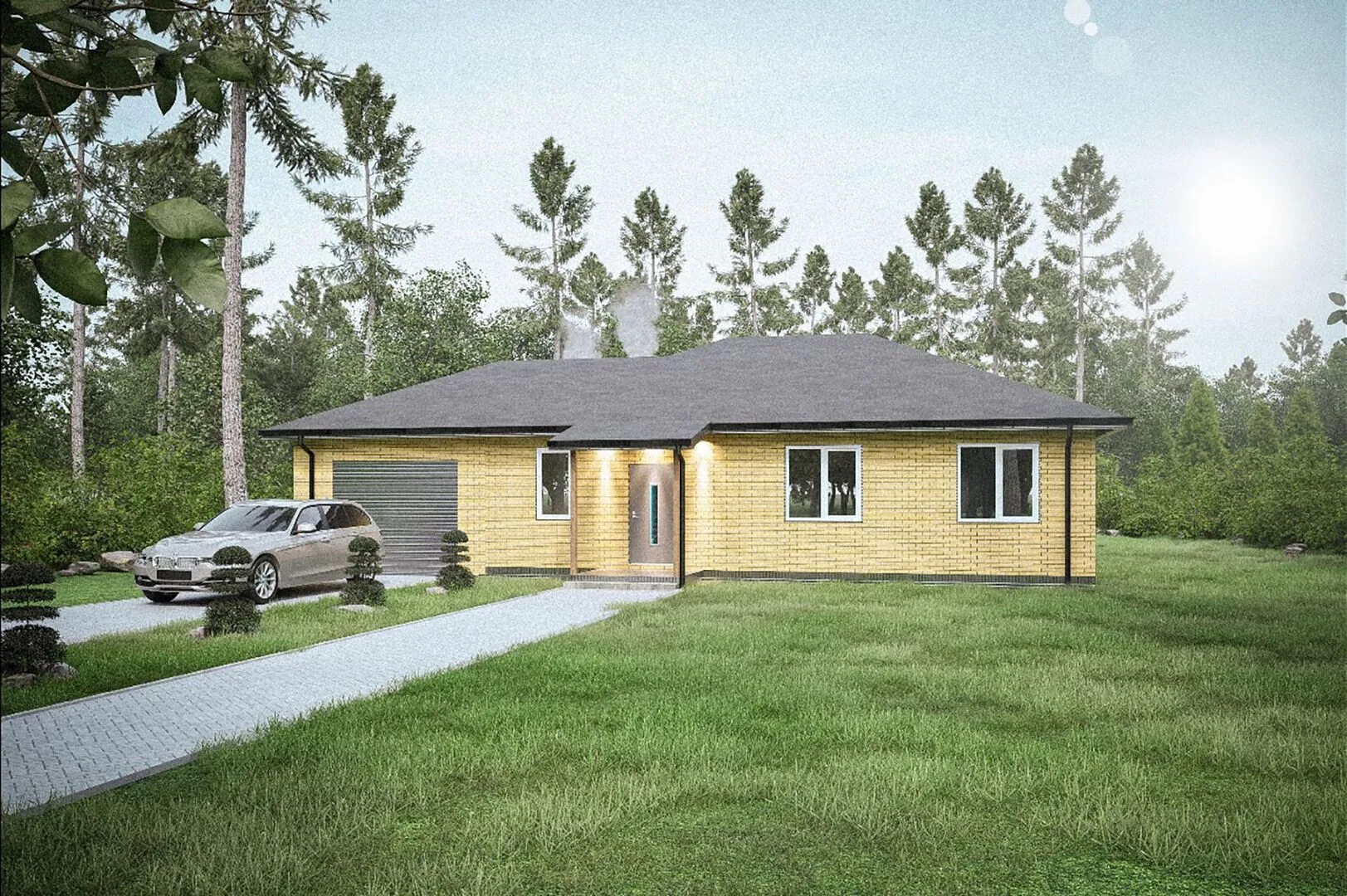 При первом взгляде на «Семейный» хочется поверить, что здесь всё время царит уют и теплая атмосфера. Дом построен в классическом стиле с вниманием к деталям: широкие пороги, строгие кутовые окна и ровные, чистые линии фасада создают ощущение гармонии и спокойствия. Круглогодичное проживание обеспечивается теплым камином и хорошо изолированными газобетонными стенами, а большие окна наполняют интерьер естественным светом, создавая ощущение присутствия на природе. Годовой круглый вид на живописный сад и просторное пейзажное пространство превращают этот дом в настоящий уголок семейного счастья. Пристроенный гараж и крытая автостоянка позволяют удобно и безопасно хранить транспорт. Несмотря на отсутствие балконов и веранд, просторные комнаты и четвёрскатная (вальмовая) кровля делают «Семейный» идеальным местом для тихого отдыха и праздничных встреч. Это дом, где каждая деталь продумана так, чтобы подарить вам и вашей семье комфорт, безопасность и тёплые семейные ценности.