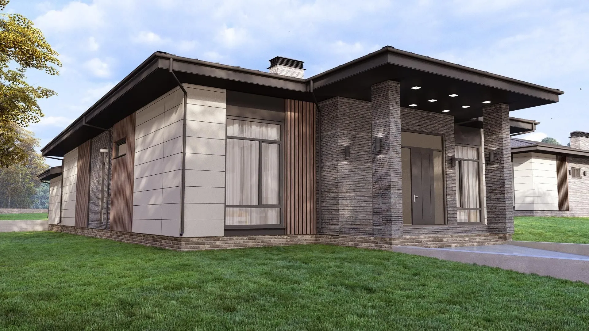 Одноэтажный дом в современном стиле THS-0014