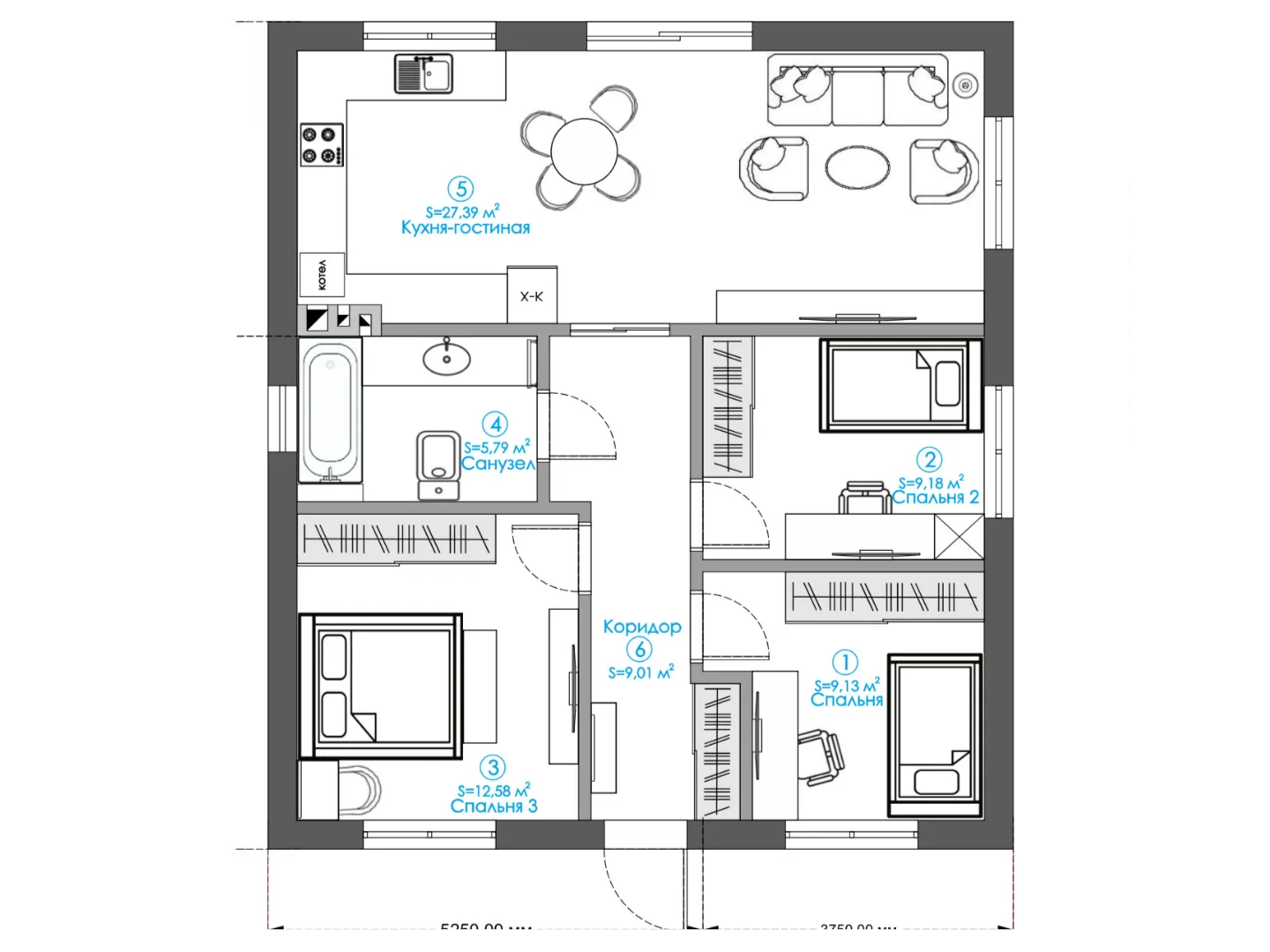 Совмещенная кухня-гостиная